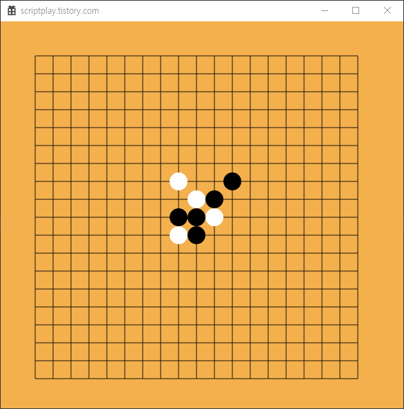 // 바둑판에 놓여진 돌을 각 위치별로 체크하여 그림.
