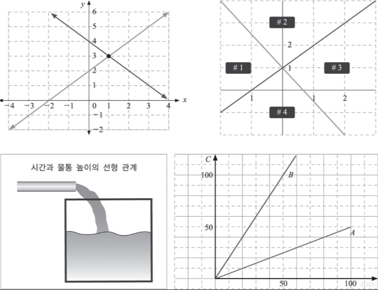 선형공간(백터공간), 벡터, 선형사상, 아핀공간, 선형변형, 행렬, 행렬식, 연립일차방정식 등.