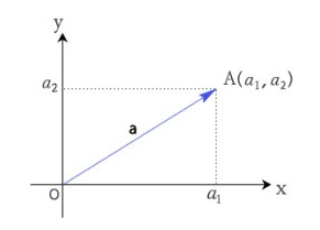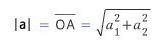 a = (a1, a2)일 때, 원점 0와 점 A(a1, a2)에 대하여 a = →OA이므로 벡터 a의 크기는 선분 OA의 길이와 같다.