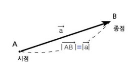 대응되는 개념으로 크기만을 가지는 변량은 '스칼라'이다.