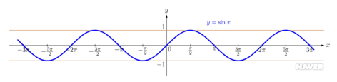 사인 함수 y = sin x의 그래프는 아래 그림과 같다.(각도를 나타내는 변수로 θ 대신에 x 변수를 사용)