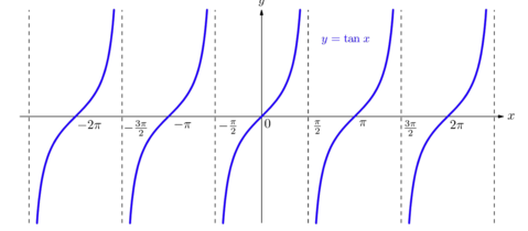탄젠트 함수 y = tan x의 그래프는 아래와 같다.