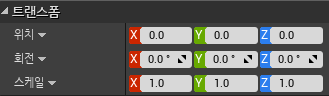 게임 엔진 내부적으로는 위치(Position), 회전(Rotation), 스케일(Scale)을 행렬로 처리한다.