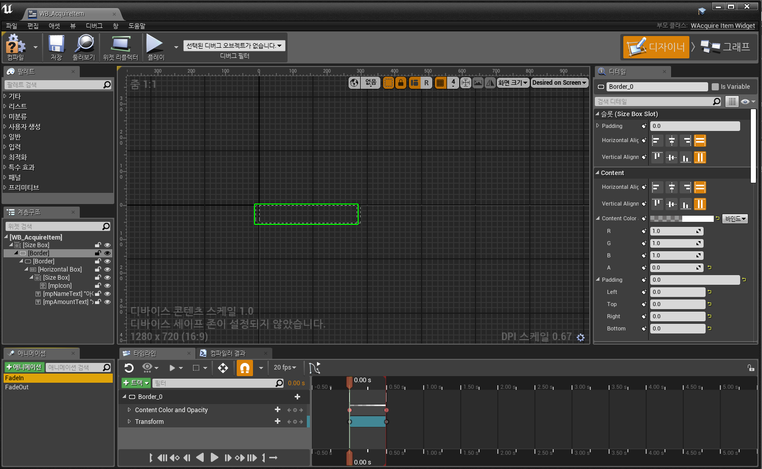 에디터 상에서 위젯의 애니메이션 작업(키 프레임)을 해줘야 하고