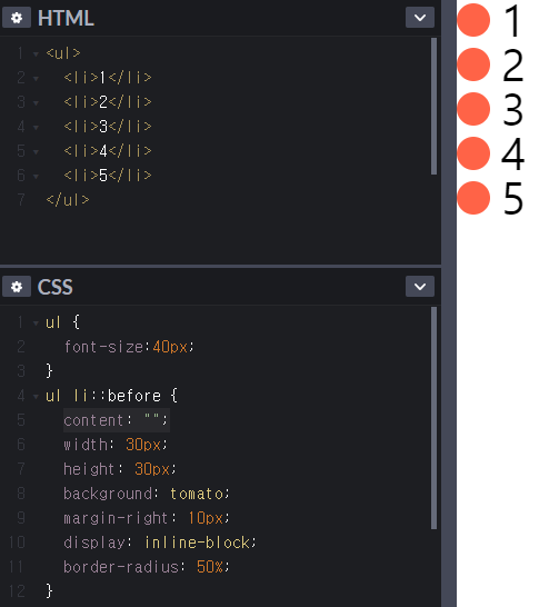 E::before / E 요소 내부의 앞에 내용(content)을 삽입.