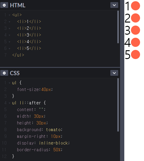 E::after / E 요소 내부의 뒤에 내용(Contents)을 삽입.