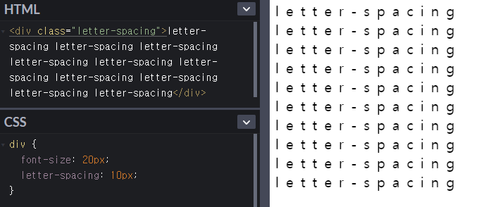 ; 문자의 자간(글자 사이 간격)을 지정.