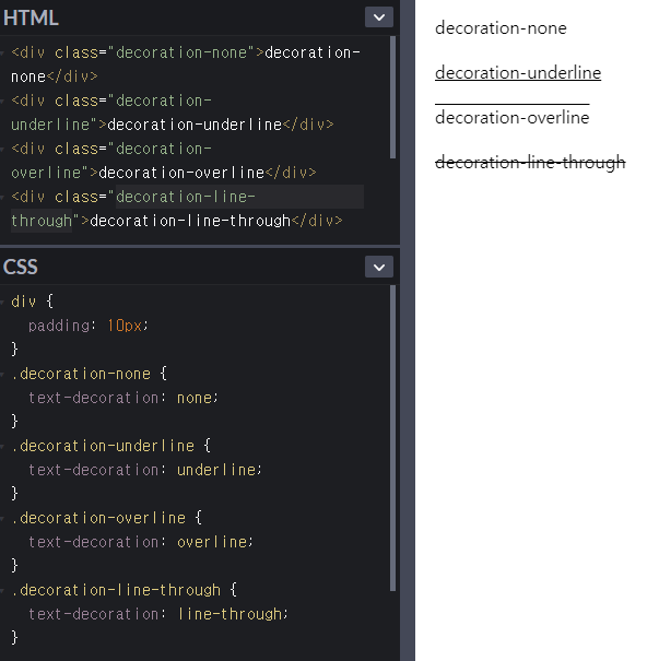 ; 문자 장식(line)을 설정.