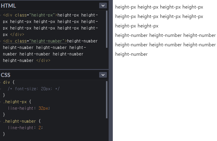 *높이는 font-size의 top, bottom 을 포함한다.