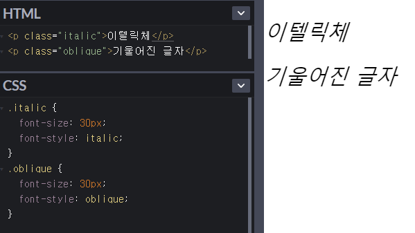 font-style : 글자 기울기 지정.