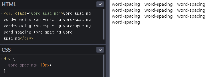 ; 단어 사이(띄어쓰기)의 간격을 지정.