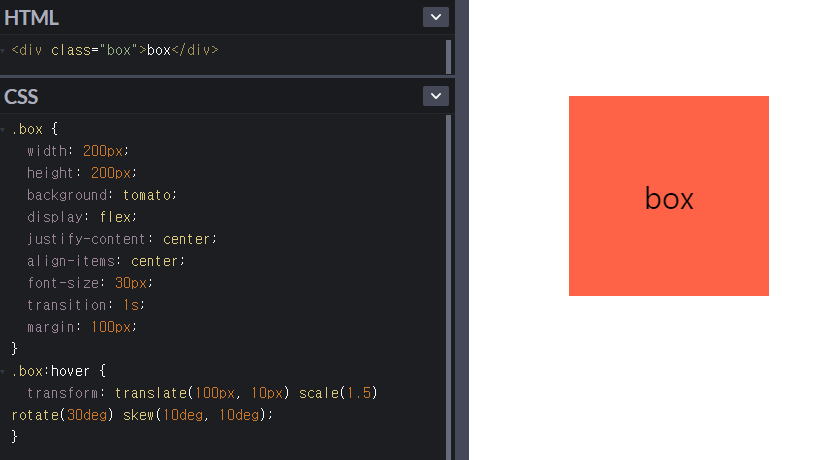 transition: 원근법 이동 크기 회전 기울임;