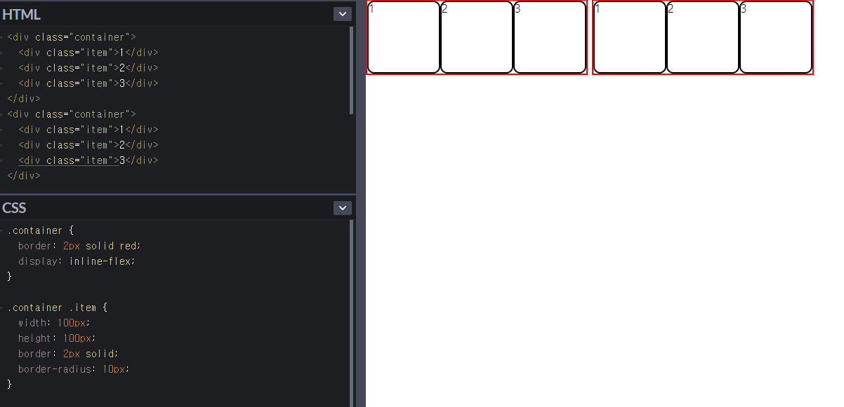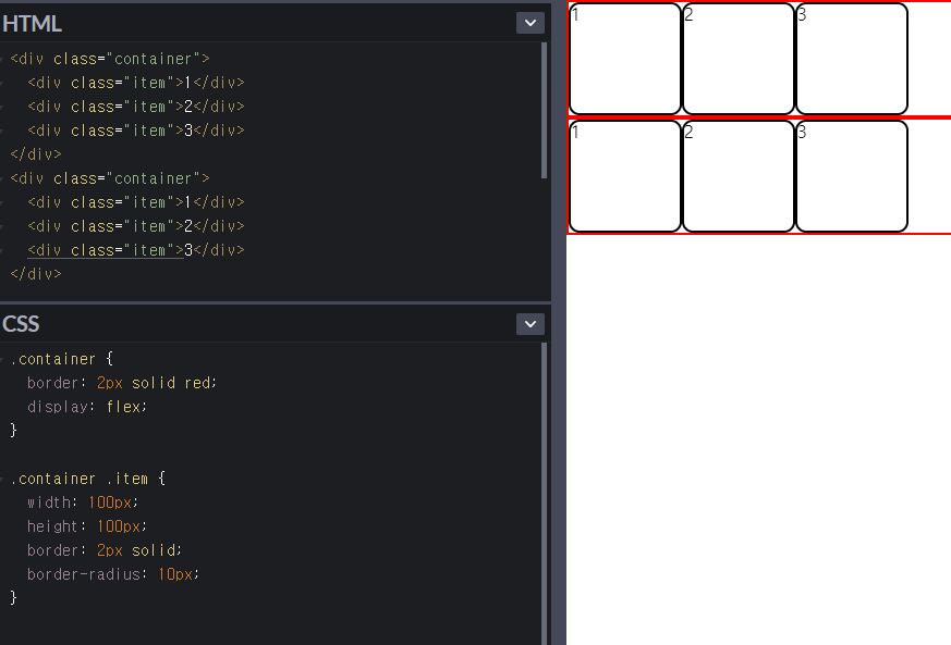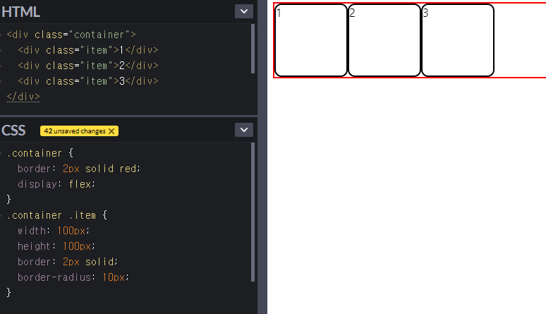 ; flex container 를 정의. 값의 차이가 내부의 Items 에 영향을 주지 않음.