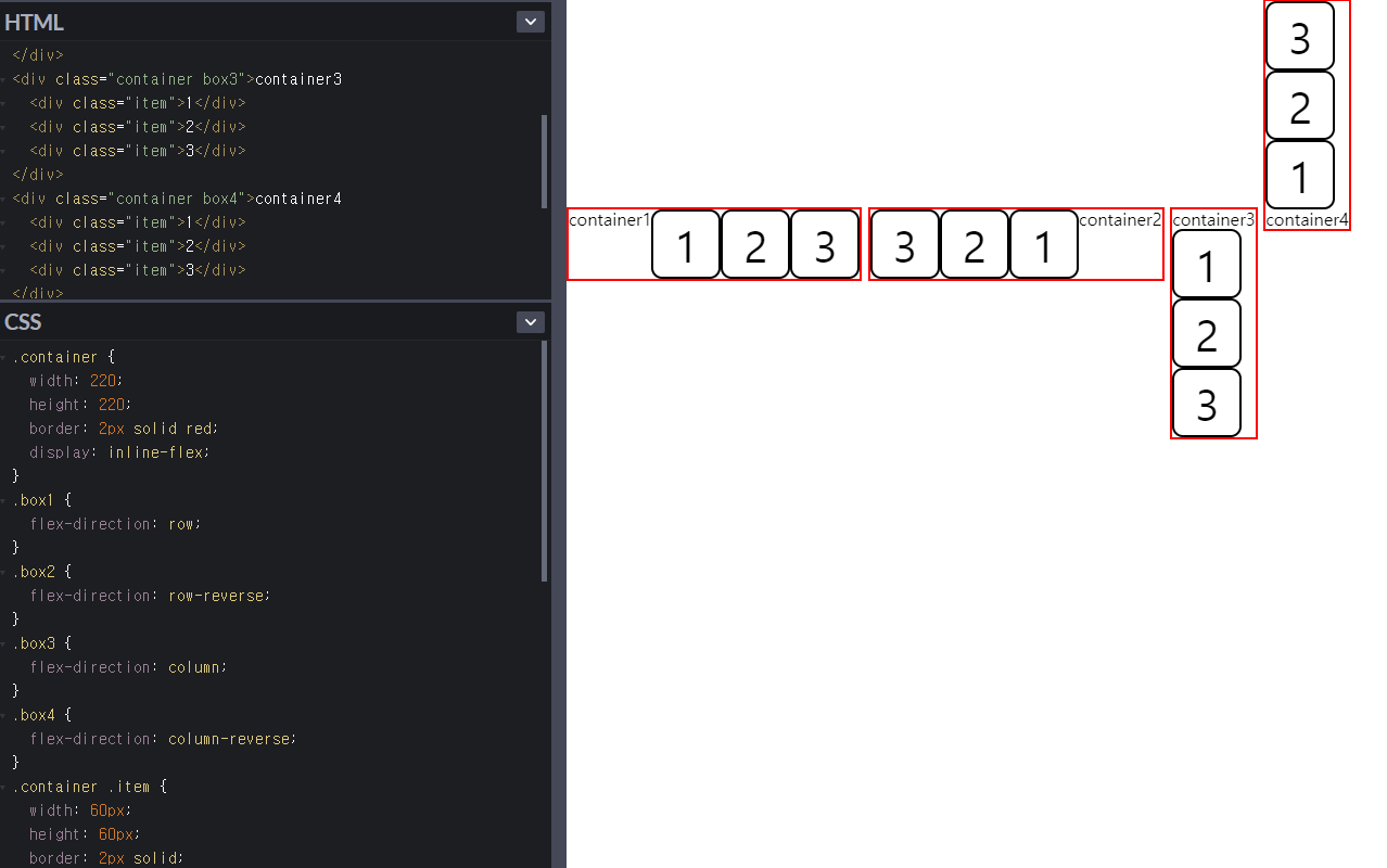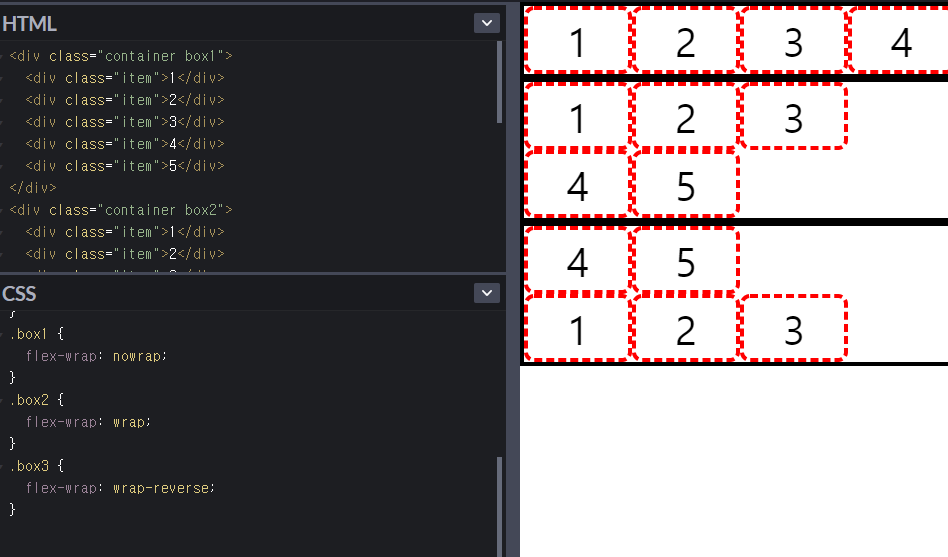 wrap-reverse : Items를 wrap 의 역 방향으로 여러 줄로 묶음.