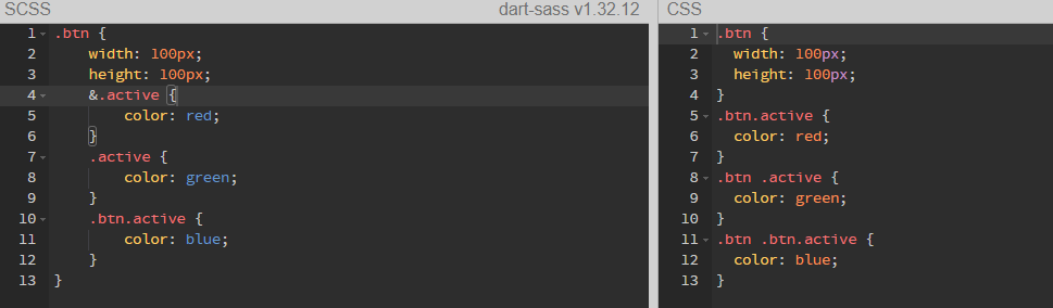 중첩 안에서 & 키워드는 상위(부모) 선택자를 참조하여 치환합니다.