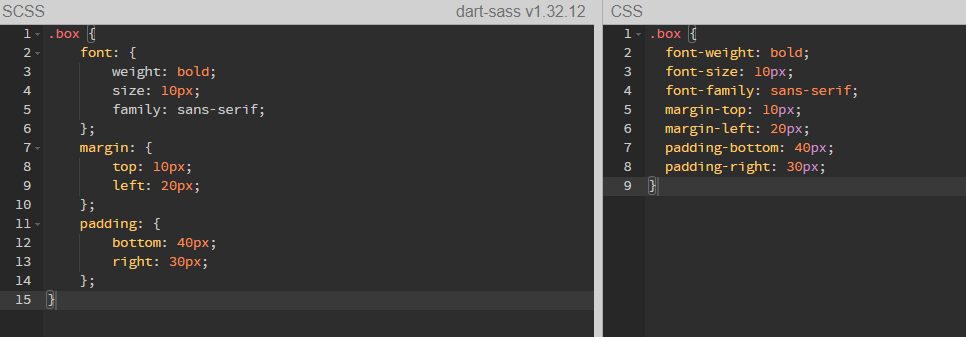 font-, margin- 등과 같이 동일한 네임 스페이스를 가지는 속성들을 다음과 같이 사용 가능.