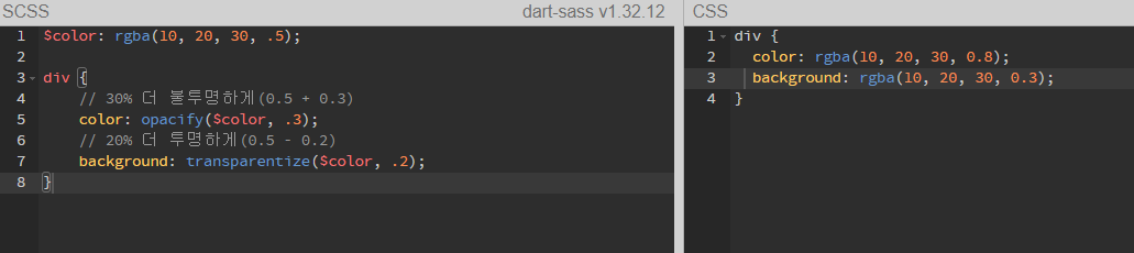 Alpha 값을 연산하기 위한 색상 함수를 사용할 수 있음.