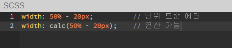 상대적 단위 연산 px 이 아닌 상대적 단위(%, em, vw 등)의 연산의 경우 CSS calc()로 연상해야 함.