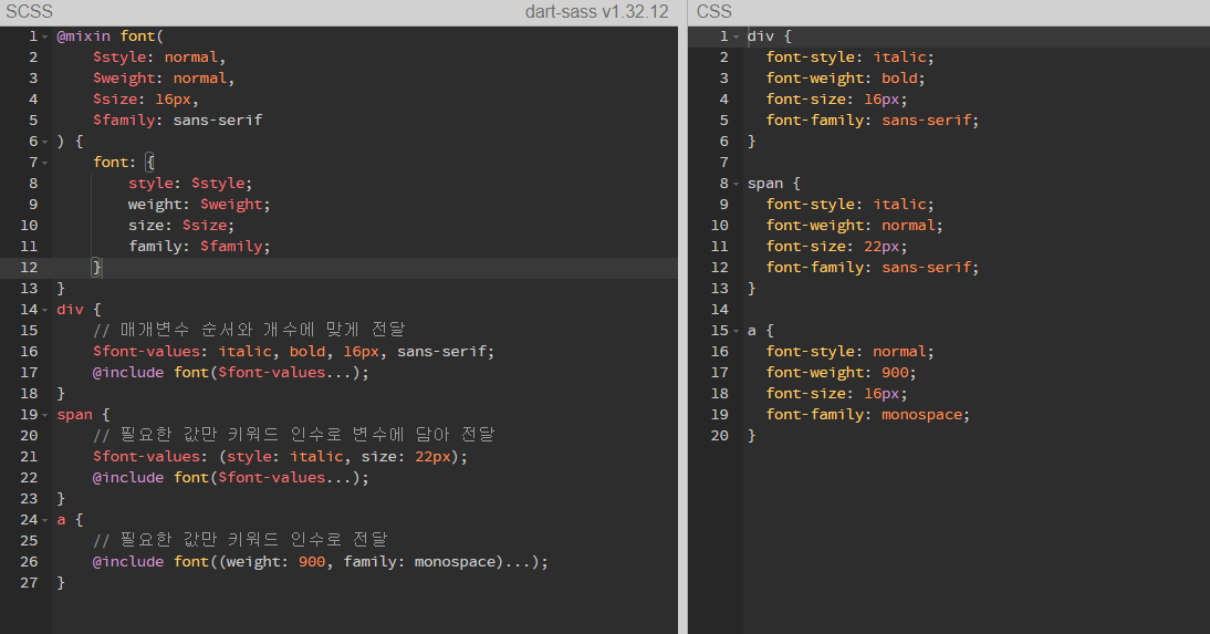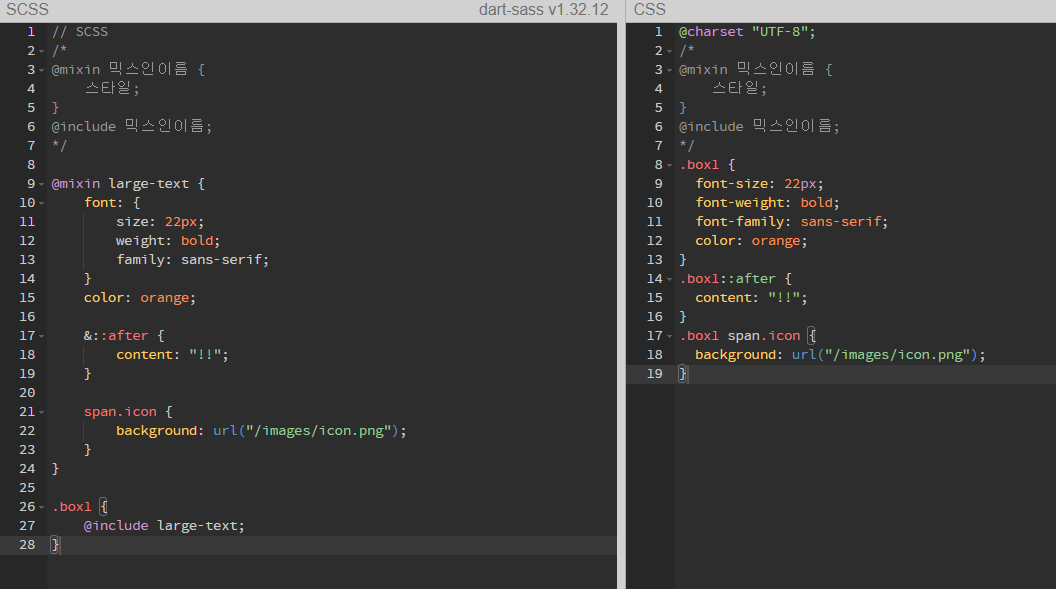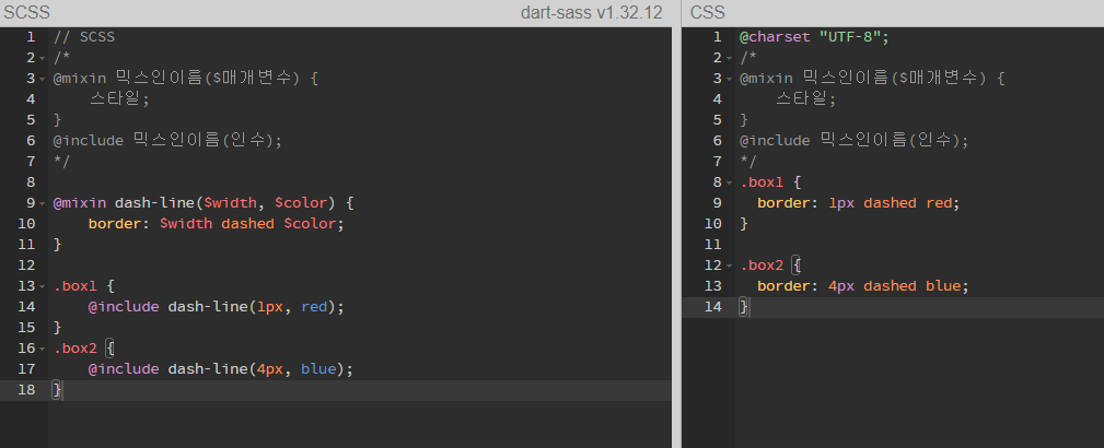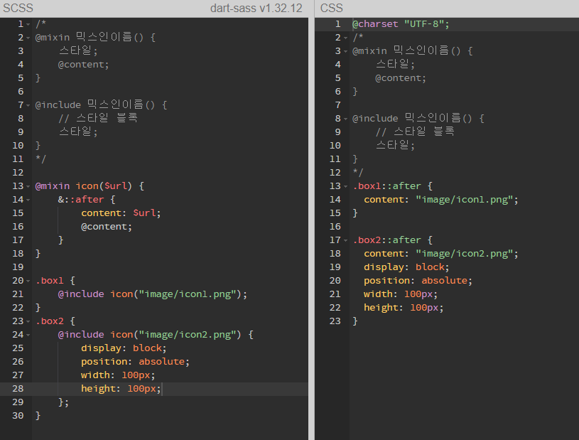 선언하기(@mixin), 포함하기(@include).