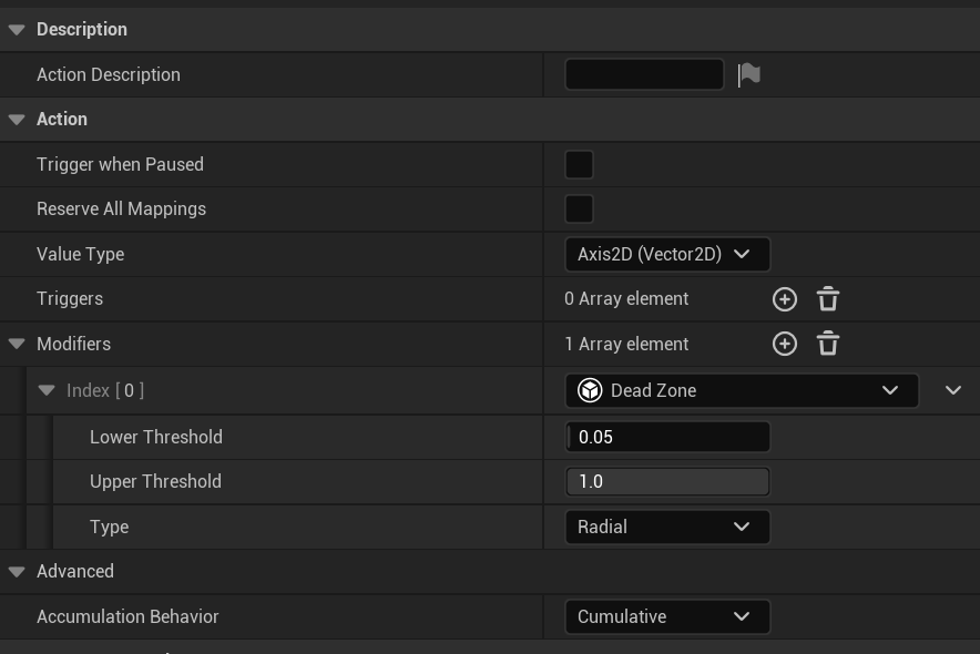 Triggers 와 Modifiers 를 설정해 원하는 입력 액션 스테이트로 구분 가능.