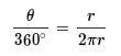 라디안 단위로 계산하면 중심각의 크기가 θ , 반지름이 r 인 부채꼴의 호의 길이를 l , 넓이를 S라 하면